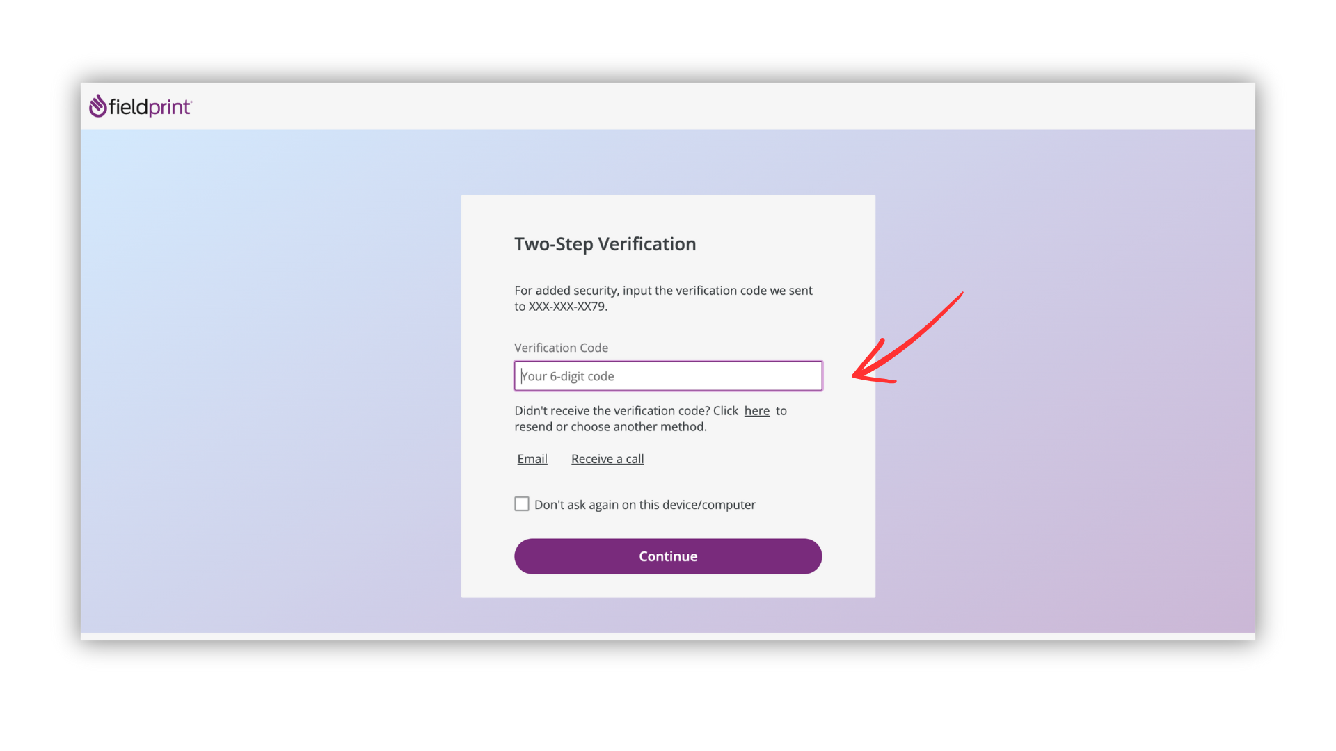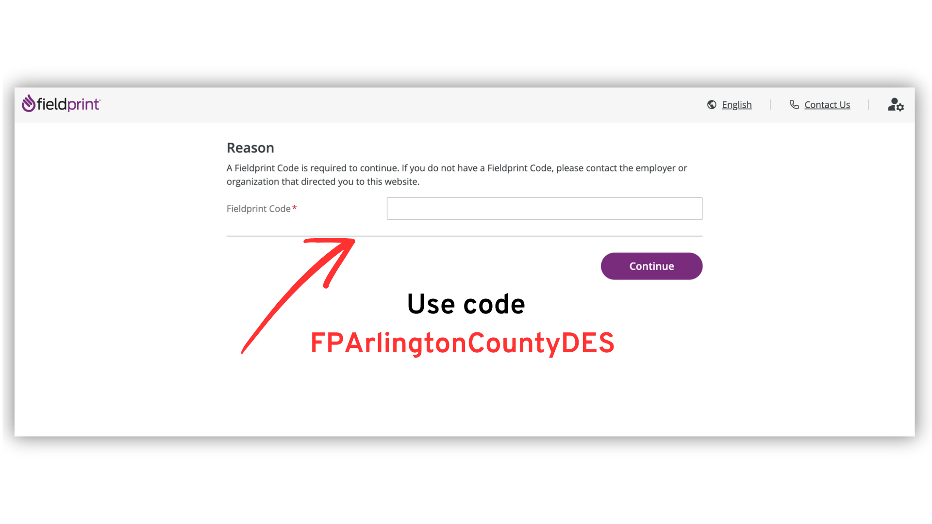 5. Enter this Fieldprint code: FPArlingtonCountyDES, then click Continue.