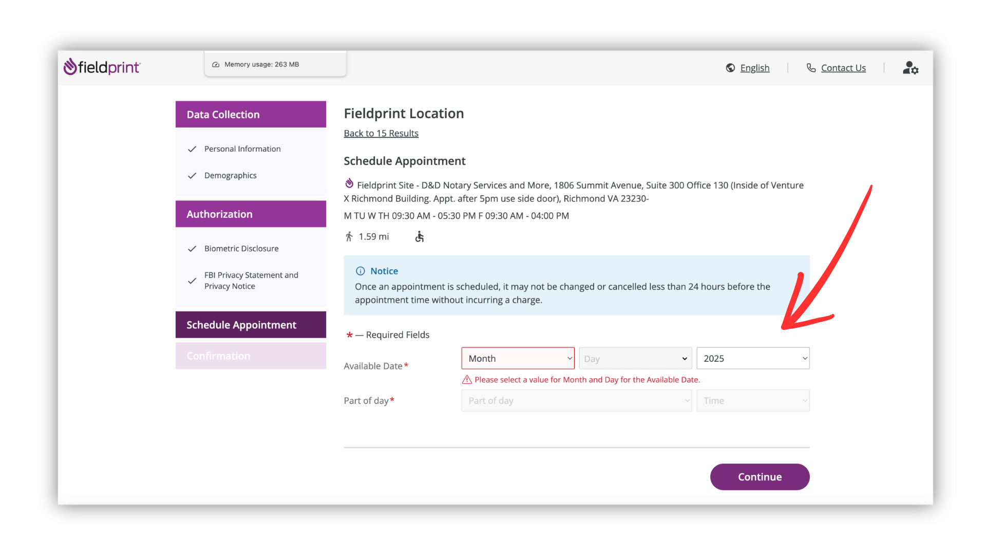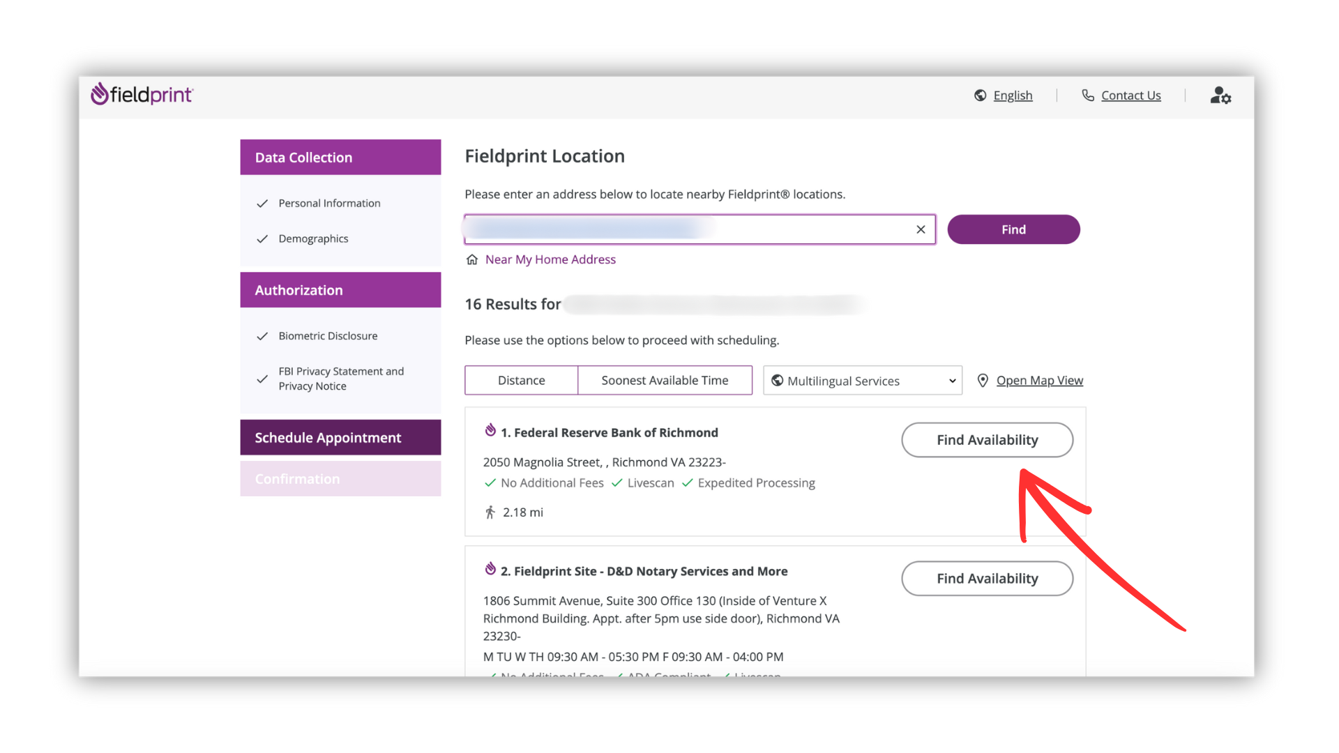 Remember, you have 10 days from the time you received your notice to get fingerprinted. Make sure you choose a date that is within 10 days.