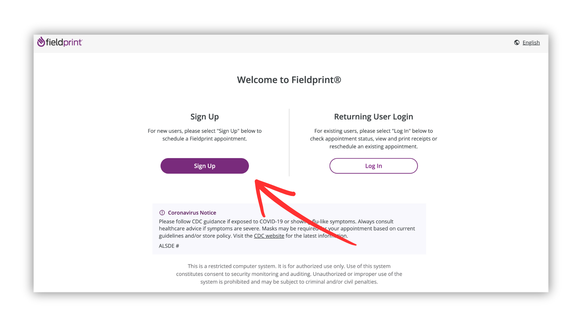 1. Click the Schedule Appointment button and then click to Sign Up.