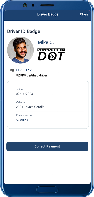 This helps UZURV Riders quickly and safely identify their UZURV Driver.