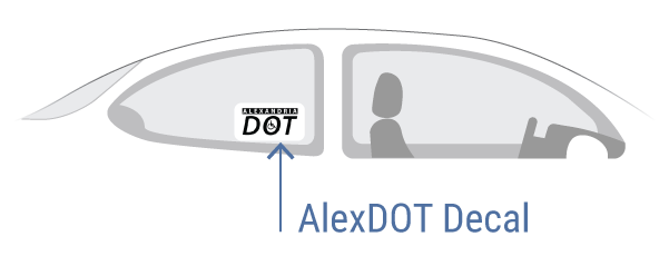 In addition to the UZURV trade dress, Drivers who are in the Alexandria DOT program must also display the AlexDOT decal. If you do not drive with the AlexDOT program in your app, you do not need to display the AlexDOT decal.