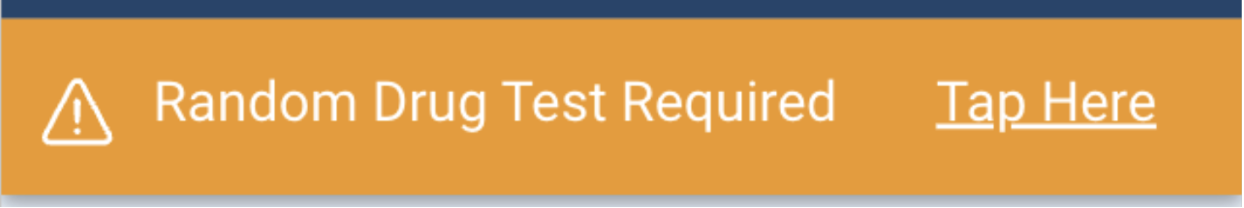 1. Tap the orange banner in your app labeled Random Drug Test Required. Tap Here.