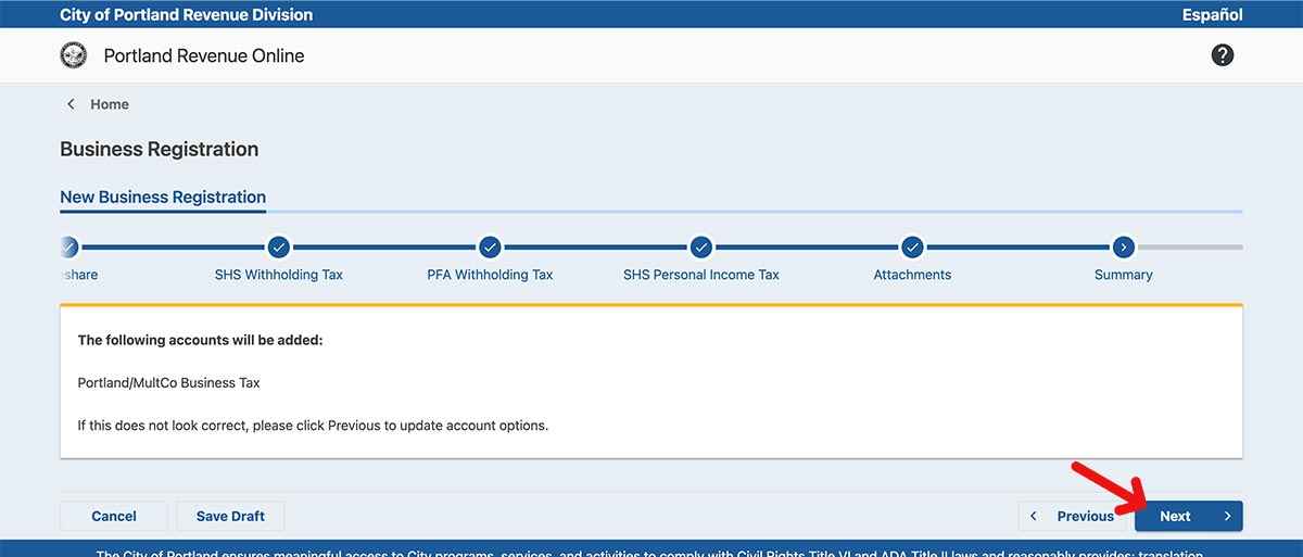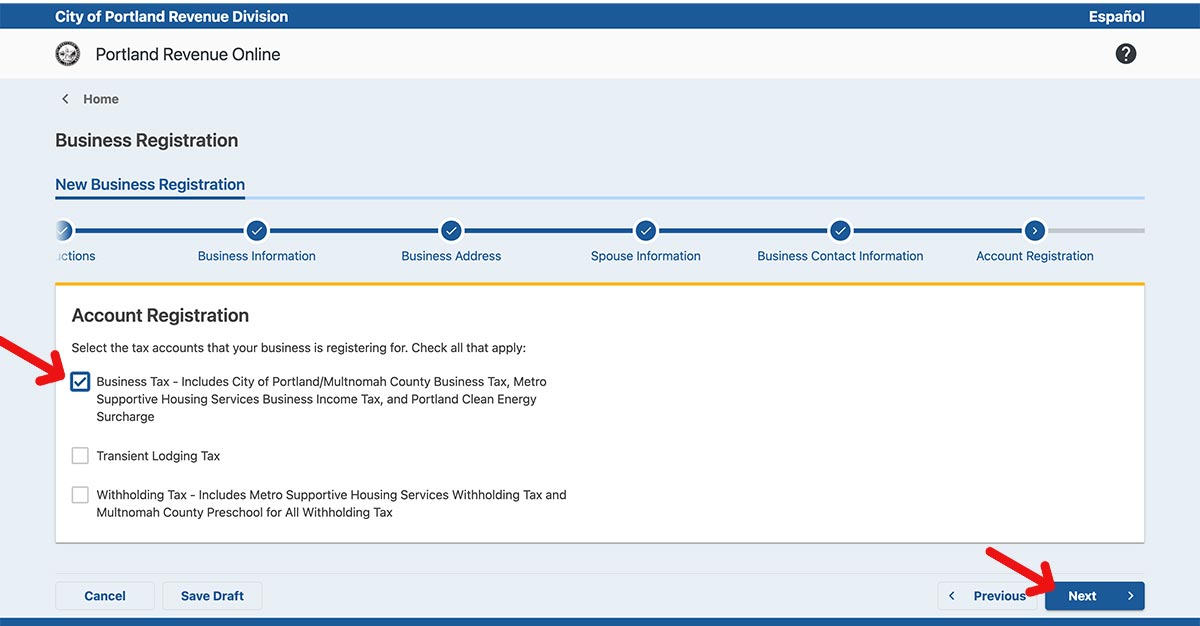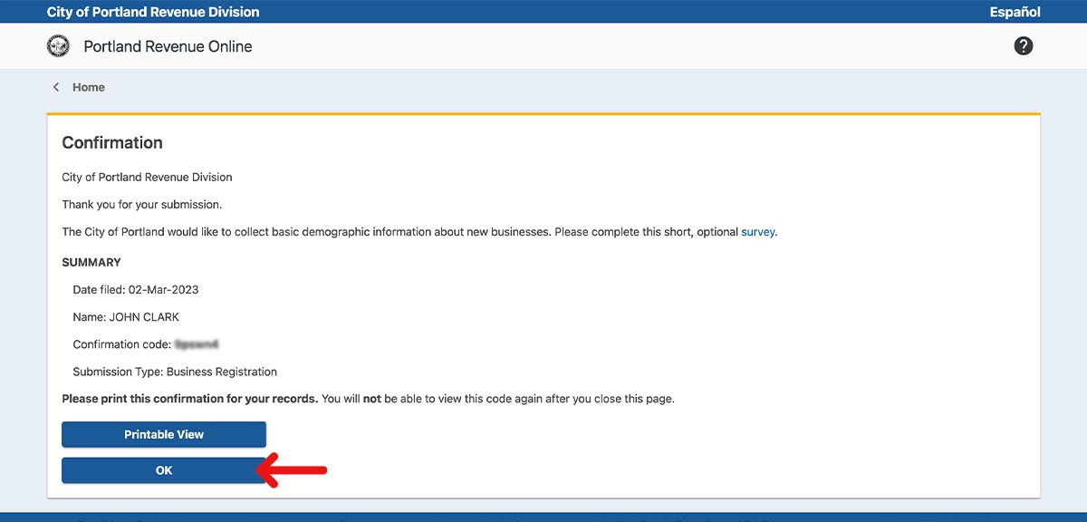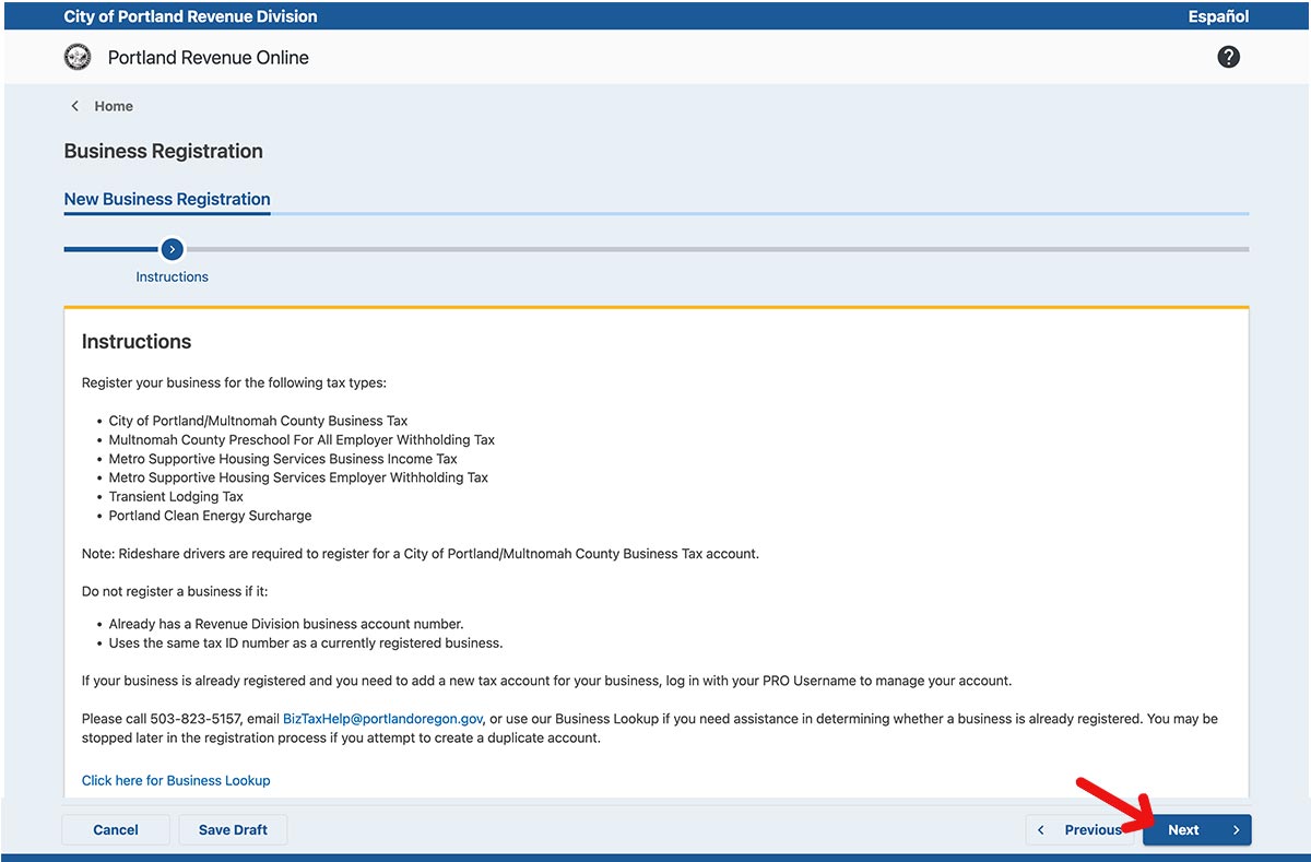 Click ‘Get Started’ to open the Portland Revenue Division page in a new tab and follow the steps below.