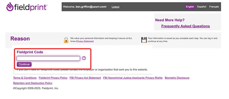 Click ‘Start Now’ to open the Fieldprint website in a new tab and follow the steps below.